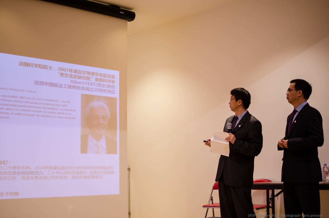 2016年11月19日,中国旅法工程师协会(AICF)在巴黎中国驻法国大使馆教育处礼堂举办了庆祝协会成立二十周年的庆典仪式。150多名会员及兄弟协会负责人到会共同见证了这一历史时刻。中国驻法国大使馆教育处公使衔参赞马燕生,中国驻法国大使馆科技处公使衔参赞孙玉明出席了大会并分别致辞。法国著名科学家,诺贝尔奖得主以及中国主要省市的合作机构纷纷发来贺信贺电。