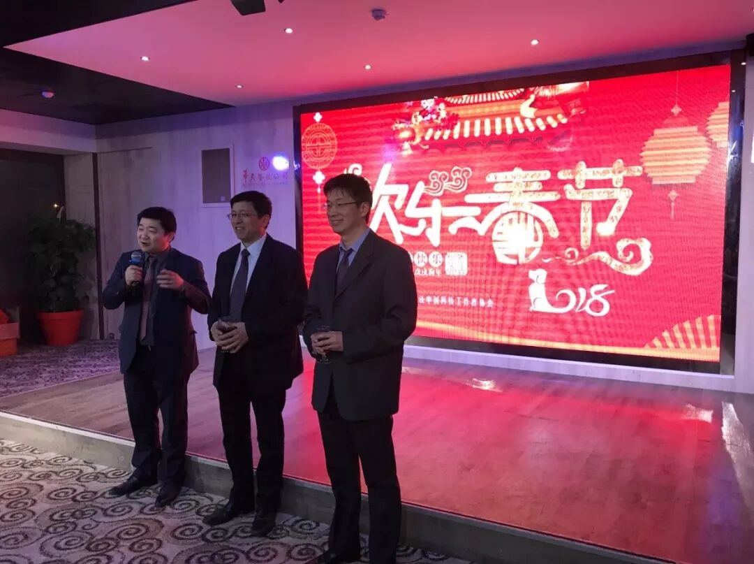全法中国科技工作者协会理事长陈勇,中国旅法工程师协会会长宋劲松,分别代表两会致词并向嘉宾,会员及家属拜年。