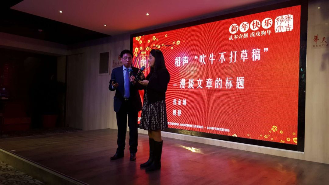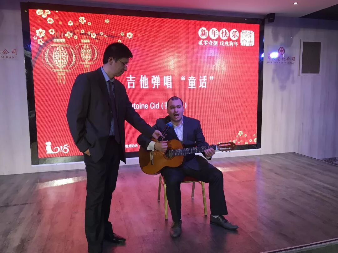 狗年新春联欢晚会在中国旅法工程师协会名誉会长、法国总理府战略与展望总署高级专家倪金城的主持下拉开大幕。倪金城作为本次晚会文艺演出的总导演,不但担任了策划,协调,导演,多才多艺的他还担任了主持,并参与编辑,演出了两个相声节目。