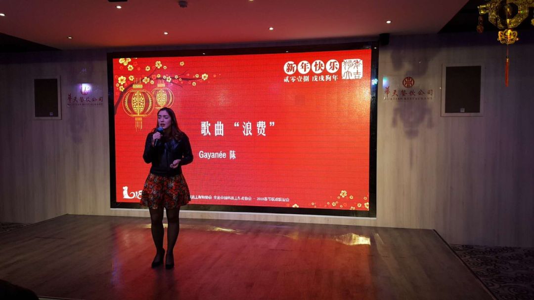 晚会的节目不但有歌曲《因为爱情》,《久别的人》,《浪费》,《童话》,《我的祝福你听见了吗》,《Emmenez-moid’Aznavour》,《La vie en rose (玫瑰人生)》,小提琴独奏《欢乐颂》《旱天雷》,《沉思》,舞蹈《楼兰姑娘》《梅花》《拉丁舞》还有相声《狗年之春》《吹牛不打草稿》,精彩纷呈的节目博得观众阵阵喝彩。
