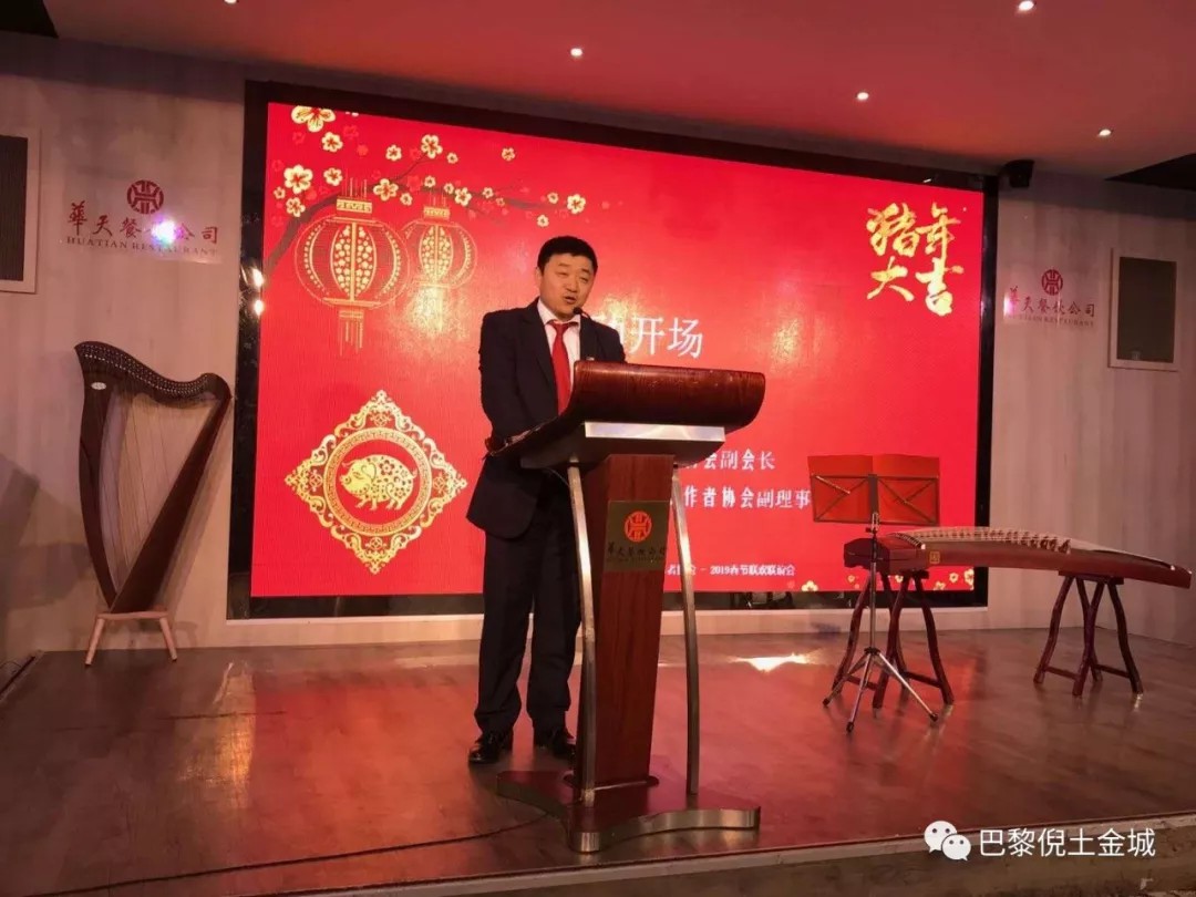 晚会开幕式由中国旅法工程师协会副会长、全法中国科技工作者协会副理事长兼秘书长龚笃晟主持,他代表晚会组委会首先祝大家新春快乐!“猪”事如意!猪年大吉大利!然后介绍了议程和到场嘉宾。