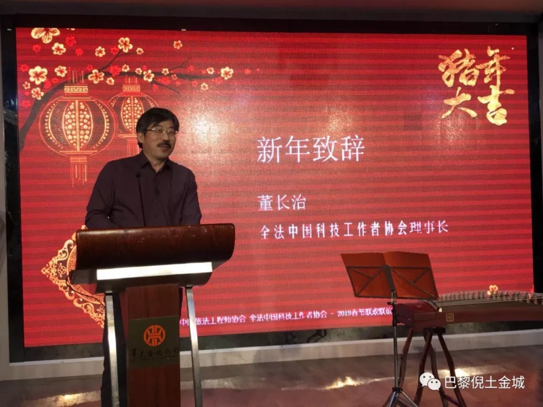 中国旅法工程师协会会长宋劲松和全法中国科技工作者协会理事长董长治分别致欢迎词并向与会的新老会员、家属和嘉宾拜年。
