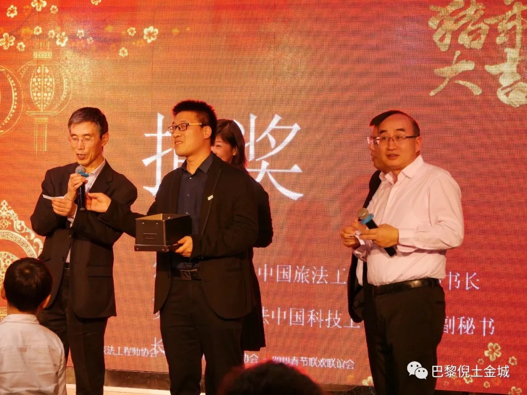 席间还有丰厚的抽奖,由中国旅法工程师协会秘书长焦龙和全法中国科技工作者协会副秘书长贾子先主持,奖品有主办单位提供的 « 留法四十年 »丛书和电子产品,法国文化旅行社提供的代金券, 法鲜生公司提供的法国生蚝,锅里锅外提供的赠券等。