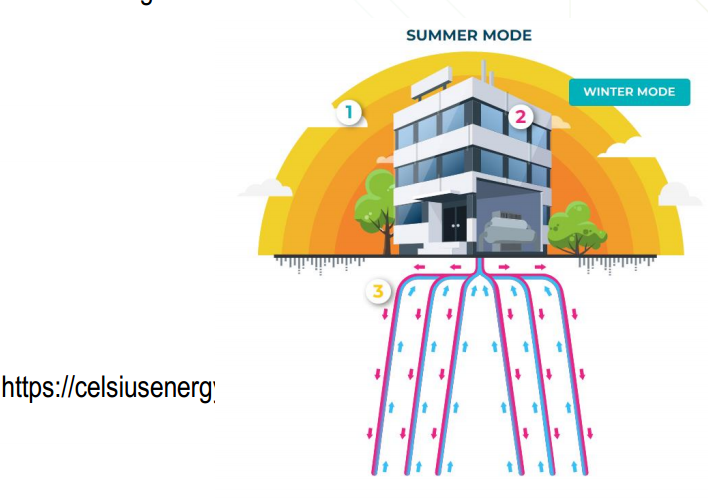 Clamart研究中心主持两个新能源项目:Celsius和Genvia。Celsius Energy项目针对地热资源,主要业务是将地热与建筑物的供暖和制冷系统连接,通过地热能源实现夏天制冷、冬天制热的作用,从而减少甚至舍弃传统油气的使用。目前,Celsius已经在Clamart研究中心建立了示范项目(demonstration project ),可供外界参观。