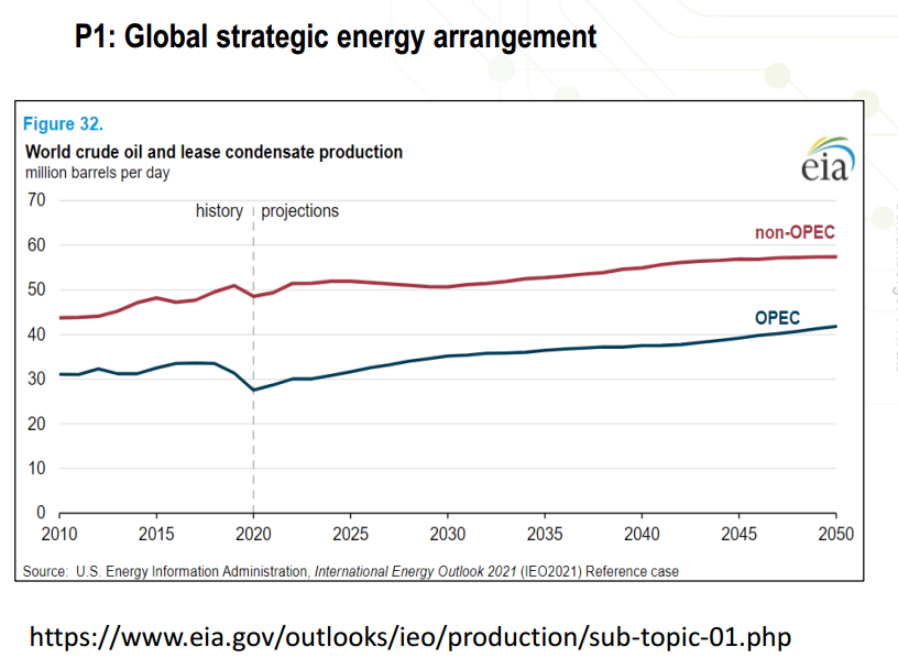 EIA(Energy Information Administration)报告显示,虽然不再投资开发,OPEC(石油输出国组织)和non-OPEC到2050年的产量都将继续增加,也就是说目前探明的储量完全可以支撑到2050年。
