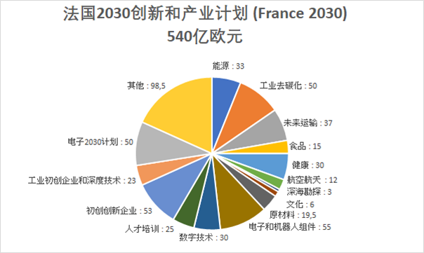“法国2030”计划是法国应对时代巨大挑战特别是生态转型、数字转型和人口转型的选择,我们必须要对创新和工业化战略进行大规模投资,找到一个创新、生产、出口的良性循环,实现可持续发展。该创新计划是一项国家创新和产业计划,旨在为明天的法国做准备,重振法国工业,推动科技创新,谋建创新大国,涉及人工智能、半导体、农业技术、绿色工业、氢能源,低碳飞机、核电、太空等领域。该计划将打造能够与中国和美国竞争的法国企业巨头,扭转法国颓势。通过该计划的实施,法国希望再次成为一个可自己选择命运并为世界作出贡献的伟大国家。